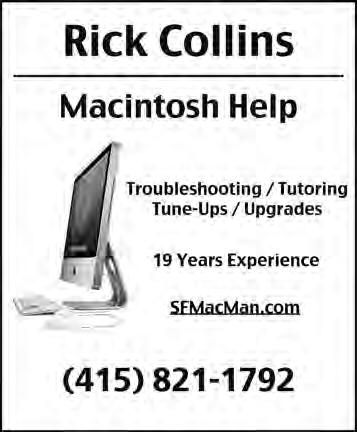 COMPUTER PROBLEMS DRIVING YOU BUGGY? Problems fixed! 25 years of industry experience. Personal IT consulting to small businesses or busy professionals. We can install and/or help shop for computer/ network/printer or setup/troubleshoot wireless networks. If you’re not technical, don’t worry—we are. Rob 415.244.3305 rob@sfcomputech.com.