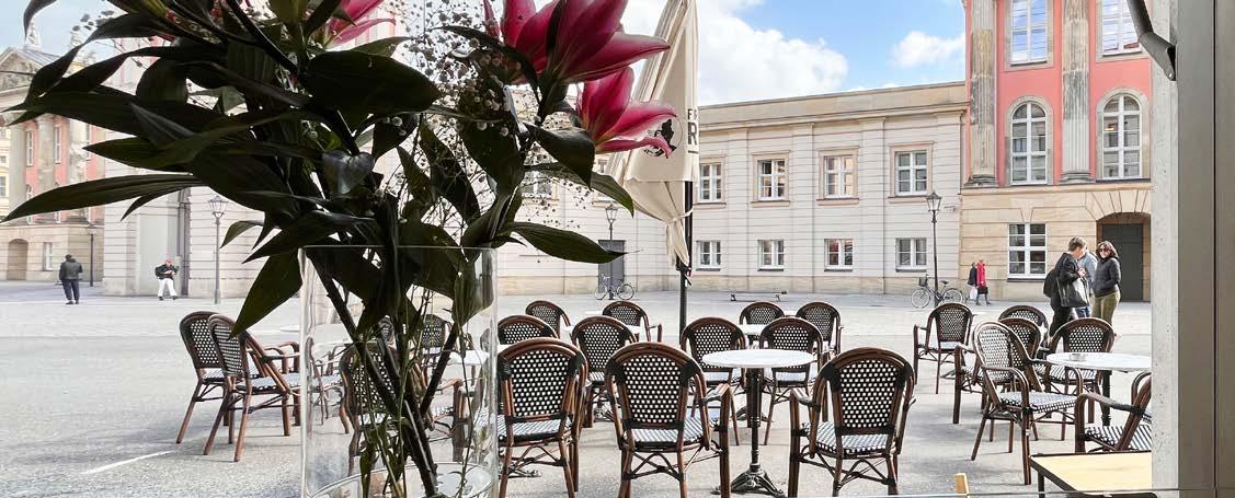 von dunkler Schokolade und ist gleichzeitig wunderbar mild“, sagt Vanessa begeistert. Bestellt wird am Tresen, abgeholt mit Pieper, unkompliziert und charmant zugleich. Doch das Café Franz will mehr sein als ein Ort für Kaffee und Kuchen. Es soll ein Treffpunkt für alle sein, für Familien, Freund:innen, Kreative. Im oberen Stockwerk gibt es eine Lounge-Ecke zum Zurückziehen oder Arbeiten sowie eine kleine Kinderecke mit Spielen und Bilderbüchern. „Ich wünsche mir, dass die Leute hier sitzen, ihren Kuchen teilen und einfach diese besondere Café-Atmosphäre spüren“, sagt Vanessa. Auch ihr Mann und ihr Vater sind Teil des Teams. Sie unterstützen die Gründerin bei ihrem Café-Traum, der die neue Potsdamer Mitte nun mit einem Hauch französischen Flairs belebt. G. Weber
