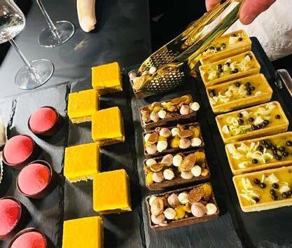 Petit Fours. Serviert wird von einem eigens kreierten Wagen im Stil der 20er Jahre. Laszlo, der Koch mit Herz, bringt seine Leidenschaft auf die Teller. „Wir wollten einen Ort schaffen, an dem man mit allen Sinnen entspannt genießen kann. Ein bisschen wie bei Freunden zuhause, nur schöner.“
