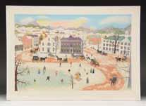 1549. ADVERTISING SIGN – “GUNPOWDER WORKS”. 19th century. Landscape print for “H.A. Weldy & Co. Tamaqua, PA” at Edgeworth Mills. Housed in a simple oak frame under glass. SIZE: overall 16” x 25”. CONDITION: very good. PROVENANCE: Martin Lane Historic & Western Americana Lifetime Collection. (02-21555/TG). $400-600.