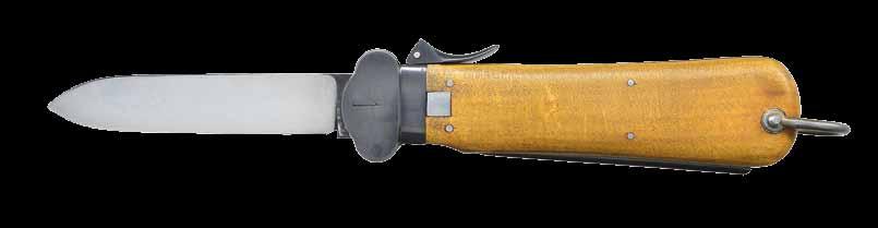 brass rivets. Leather scabbard marked on the reverse “U.S. BOYT 42”. CONDITION: knife & scabbard show light wear overall. 4) MACHETE. An Army Airforce survival knife of the WWII era. This folding machete measures 11 1/2” closed. Blade is unmarked and is complete with its sheet metal protective covering. 2-Piece composite grip with lanyard hole intact. CONDITION: knife shows light to moderate wear overall with heavy sharpening to the blade. 5) FENCING BAYONET. A good example of a M1912 fencing bayonet measuring 19 1/2” in length. Leather is stamped with “H.E.K.” inspectors marks. CONDITION: light wear overall. (02-17939/BF).