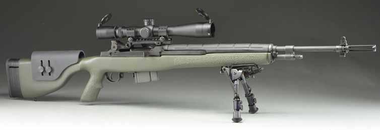 UNATTACHED ACCESSORIES: 6 3/4” blade bayonet marked at front of cross guard “U.S.M4 PAL”; leather washer handle. Green plastic scabbard marked “U.S.M8A1” & “B.M.CO.” Bayonet has been lightly sharpened & retains approx. 60% originally parkerized finish. Grooved leather handle has wear & scuffing. Scabbard has light wear, staining & handling marks. CONDITION: buttstock has attractive arsenal rework type finish w/ light wear & scattered handling marks. Hand guard has most of its original finish w/ light wear & handling marks. Metal retains 40% worn original finish w/ notable loss of finish on bbl. & band. Good shiny bore w/ lightly worn lands. (23-618/RW). CURIO. $800-1,200.