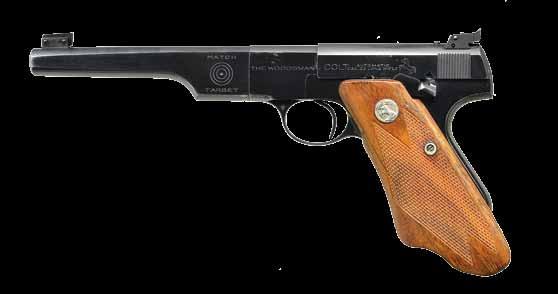 1032. EXTREMELY RARE HIGH STANDARD CIA SILENT PISTOL. Cal. 22 LR. S# 128611 (Pistol & suppressor) Bbl.8”. Since the May 1, 1960 Soviet downing of US CIA pilot Francis Gary Powers, from his U-2 high altitude reconnaissance jet while flying deep in Russian territory over the Ural Mountains, the CIA “Secret spy pistol” has no longer been a secret. When the Soviets found it in his cockpit survival case they convicted him of espionage. The High Standard HD w/ integral suppressor has been an item of lore for a very long time, eventually covered in books including “OSS Special Weapons & Equipment - Spy Devices of WWII” by H. Keith Melton, and more recently, on the world wide web. This is an absolutely amazing find. Pistol is a High Standard Model HD, parkerized in finish. Right side of frame marked “ PROPERTY OF U.S.” above flaming bomb ordnance stamp, just rear of barrel. Suppressor measures 8” & stamped at 6 O’clock; “AVS AHF INC FAYETTEVILLE, NC / MODEL HDM CAL 22 SN 128611”. Suppressor serial number matches pistol, which weighs in at 2# 13oz unloaded. Left side of receiver stamped; “MADE IN U.S.A. / THE HIGH STANDARD MFG CO. / NEW HAVEN CONN / PATENT PENDING / .22 CAL / LONG RIFLE”. Pistol receiver is marked w/ serial number on front side of pistol grip. Low profile front blade sight w/ drift adjustable rear sight. External hammer w/ serrated hammer spur. Thumb safety on left side. Mag release located on bottom of pistol grip. MAGS:1 steel 10 rd. CONDITION: Matte parkerized finish is complete & consistent w/ full coverage. The only sign of prior use is some spotting, primarily on the left side, such as that typically earned in a horizontal display, or in a display case for long periods of time. Weight, within an ounce of that published in early “Restricted” documentation” indicates it hasn’t been used to any extent as leading in .22 rimfire ammo can often build up over time, especially in these early, ported barrel baffle designs.. NATIONAL FIREARMS ACT SUPPRESSOR REQUIRING BATF TRANSFER BEFORE TAKING POSSESSION. FULLY TRANSFERABLE. (03-1621 / 23-992/JZ). CURIO CLASS III. $18,000-28,000.