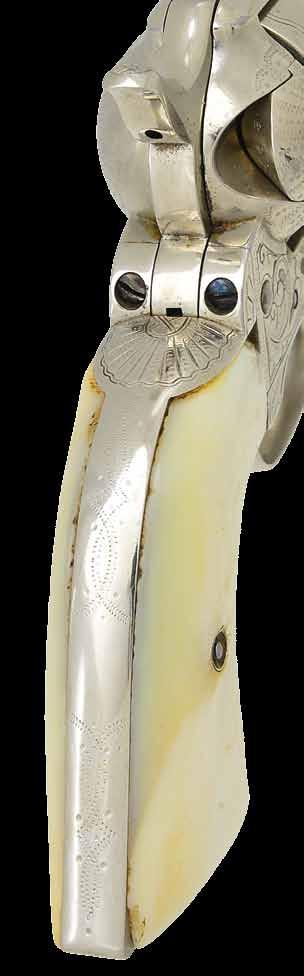 Pistol Grip Date Shipped :8-15-1885 Order# 22435”. CONDITION: fine. Barrel & magazine tube retain over 60% dull fading blue showing edge wear w/ scattered spots of light pitting & surface corrosion. Receiver, side plates, hammer and lever show over 30% light & fading case colors with scattered spots of dark corrosion. Loading gate retains 80% original blue. Brass lifter has a good uncleaned patina with sharp caliber marking. Wood has worn original finish, good checkering, showing age darkening around action with numerous scratches and handling marks. Bore remains bright with strong rifling showing light pitting. (01-23137/DS). ANTIQUE. $10,000-15,000.
