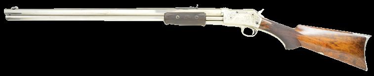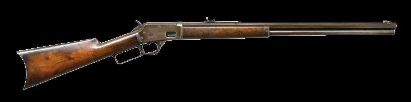 channel of stock has matching assembly number. CONDITION: very fine. Bbl. and mag. tube retain over 98% blue showing light edge and carry wear. Action retains over 97% bright original case colors showing spots of freckling. Brass cartridge lifter has a pleasing mustard patina. Original wood finish shows areas of wear with scattered scratches and marks. Crisp mechanics. Front sight insert is missing. Bore retains strong rifling, showing scattered spots of light pitting. (01-22293/DS). ANTIQUE.