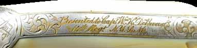 N.W.M.P.MARKED LEVER ACTION SRC. Cal. 45-75. S# 44220. Bbl. 22” carbine post style front sight with special North West Mounted Police rear sight. 3rd model action has saddle ring on left side. Band fastened walnut forearm and stock with steel carbine buttplate. Toe line of stock him has deeply stamped and possibly added marking “N.W.M.P. 20”. The normal NWMP banner marking on right side of stock is not visible. Serial number indicates 1884 mfg. CONDITION: bbl. finish has a faded blue/brown appearance. Action has faded finish showing spots of corrosion. Wood has lightly refinish appearance showing dents, scratches and marks. Sound action. Bore retains sound rifling showing scattered light pitting. (01-21731/DS). ANTIQUE. $4,000-6,000.