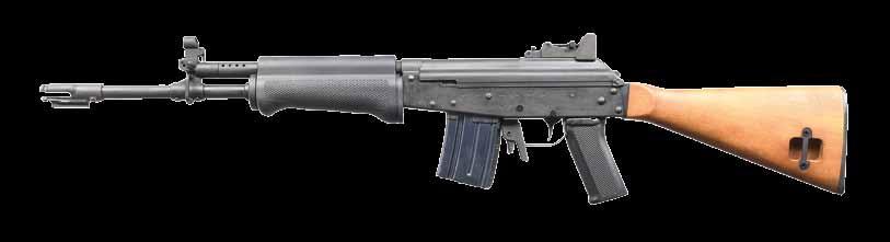 1021. SOUGHT AFTER & ALL MATCHING CHILEAN SIG 510-4 MACHINE GUN PARTS KIT. A 7.62x51mm NATO derivative of the SIG Stgw. 57 battle rifle. The SIG 510-4 was designed having a smaller overall profile & lighter weight w/ the intent of sales to the Chilean military. This parts kit is marked “ARMADA/ DE CHILE” above the S# “5594” over the chamber having “SIG” w/in an oval marked over the top of the buttstock socket. Kit consists of a bbl., bbl. shroud, trigger housing, bolt assembly, buttstock, as well as 1 - 20 rd. mag. and a bayonet w/ scabbard. All numbers are matching & are present on the receiver, bbl. shroud, trigger housing, bolt assembly, as well as on the bayonet. CONDITION: metal components exhibit varying degrees of wear & thinning that show through to gray patina plus scattered marks from handling & storage. Some areas of hardened grease as well as some spots of surface oxidation & pitting. Mirror bore exhibiting some light pitting while retaining well defined rifling throughout. Wood furniture shows scattered marks & impressions from handling & storage. Bayonet is excellent overall. A nice all matching example of a sought after Chilean SIG 510-4 parts kit. (02-21807-1/MLW). $2,000-3,000.