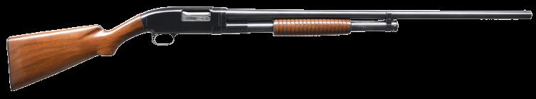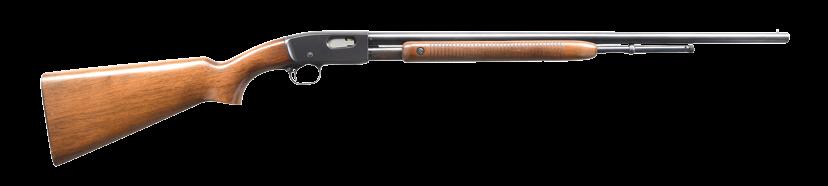 2039. SPECIAL ORDER REMINGTON MODEL 25 C GRADE PUMP RIFLE. 27061. Bbl. 24” round. Original sporting sights. Slide handle & pistol grip stock of nicely grained thin shell walnut. w/ crescent steel buttplate & factory point pattern hand checkering. Mfg. 1936. CONDITION: 90% lightly faded blue showing slide wear & spots of freckling. Original wood finish shows scattered scratches & marks. Bright near excellent bore. PROVENANCE: The estate collection of Don “Duck” Combs. (24-2476/DS). CURIO. $2,250-3,000.