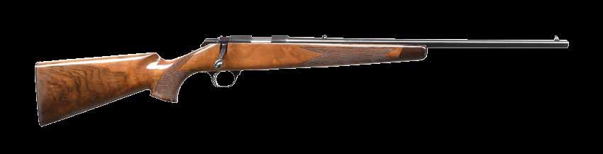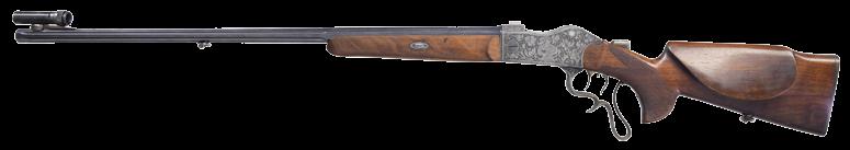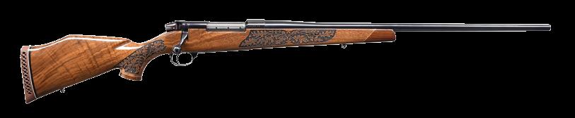 right side of the chamber. Metal components exhibit a lustrous blue finish overall, save for the aluminum trigger guard, which shows a glossy black finish. Wood Monte Carlo pistol grip buttstock features oak leaf and acorn relief engraved panels on either side of the grip and forearm. CONDITION: metal components retain virtually all of their original factory finishes, exhibiting few superficial handling marks. Mirror bore, exhibiting well defined rifling throughout. Stock is excellent overall. (24-1844/MLW). MODERN. $1,200-1,800.