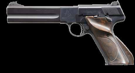 22 LR. SN. 9952. Bbl. 4 3/4”. Adjustable rear sight. Blue finish. 2 piece checkered walnut grips. Total of 10,935 mfg. 1931-41 & 1947.