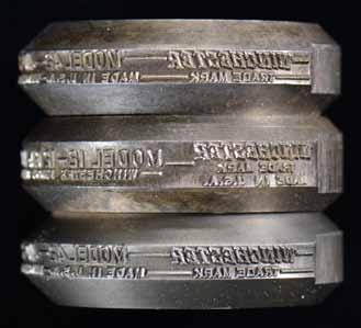 2745. LOT OF 3 WINCHESTER ROLL DIES. Steel bbl. marking roll dies supplied by “Industrial Engraving Inc.”. Dies are 2 1/4” in diameter. No. 1 is marked “MODEL 42410-2 1/2 IN. CHAM.”. One side is marked w/ item no. 33633-1334 & S# 3014. No. 2 is marked “MODEL 42-410-3 IN. CHAM.”. Side is marked w/ item no. 33933-1262 & S# 4573 followed by 60. No. 3 is marked “MODEL 12-16