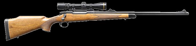 is sourced from a military rifle; handle has been lowered. Late type BRNO shroud with side safety is installed. Bottom metal is fitted with double set triggers; floorplate is removed with push button. Trigger guard is separate in late style. Full length stock of relatively plain European walnut measures 14-1/2” over checkered plastic buttplate and features right hand cheekpiece, plastic grip cap, steel nose cap and sling loops. Checkering is of point pattern. Rifle is fitted with Leupold VX-III 1.5-5 scope with duplex reticle in G&H mount. CONDITION: good as refinished. Metal parts retaining nearly all of a reblack. Stock with thick oil refinish; checkering lightly worn. Bolt a replacement; with stock grooved for low handle. Bore is bright and shiny. Scope is very fine, optically clear. (23-