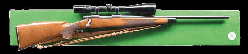 finish. Walnut Monte Carlo pistol grip stock with left side cheekpiece. Bottom-mounted sling swivels with leather sling. MAGS: 1-4 rd. CONDITION: stock shows some scattered handling marks. Metal retains 95% original blue with a patch of light oxidation on underside of bbl. and some light edge wear. Action functions properly when handcycled. Bright, near excellent bore. (24-5069/MJC). MODERN. $800-1,200.