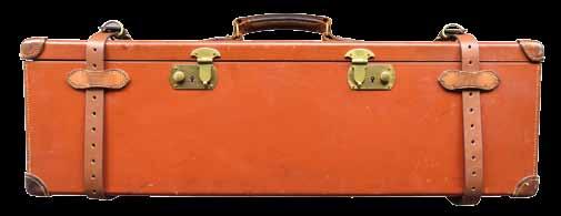 SHOTGUN CASE, WITH 200 ROUNDS OF .470 EXPRESS & APPROXIMATELY 245 ROUNDS OF .475 NITRO EXPRESS. Lot consists of 1) brown leather shotgun case embossed “C.W. WYATT” on the lid. Interior features a red felt lining, with a vintage Cogswell & Harrison label present on the interior of the lid. Case contains a sterling Cogswell & Harrison oiler, wood cleaning rod, and 47 (39 primed, 8 fired) Kynoch .470 Nitro Express cartridge cases. 2) 1 box containing 4 bricks of 200 rds. of Kynoch .470 Nitro Express ammunition. 3) 1 box containing 40 5-rd. boxes of Kynoch .475 Nitro Express ammunition, 1 brick of 50-rds. of Kynoch .475 Nitro Express ammunition, and 2 plastic containers containing 38 fired B.E.L.L. .475 Nitro Express cartridge cases. CONDITION: case exhibits exterior wear from handling and storage, with some age related cracking, crazing, and scattered spots of age related discoloration overall. Lid is warped on the left side. Boxes of ammunition are all excellent overall. (02-22276/MLW). $1,500-3,000.