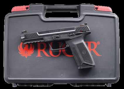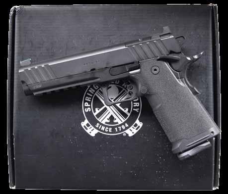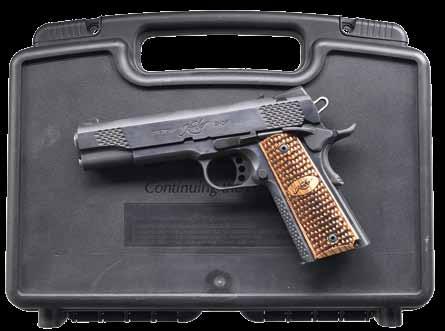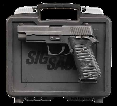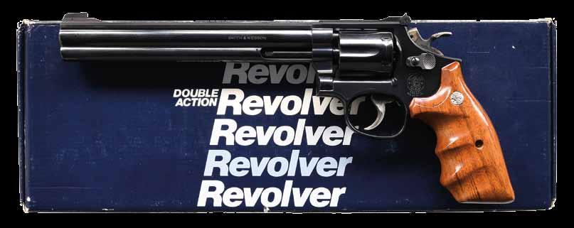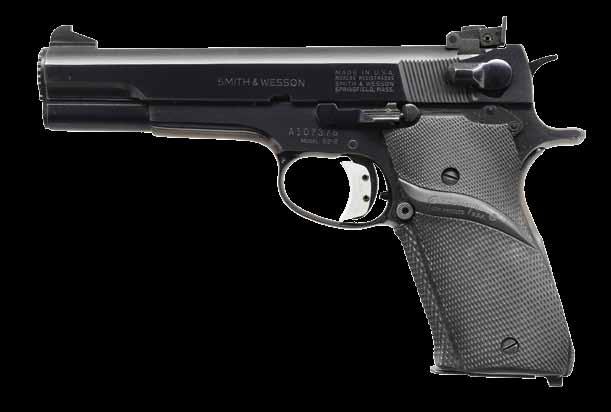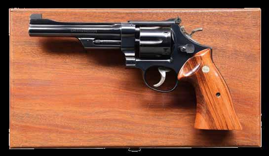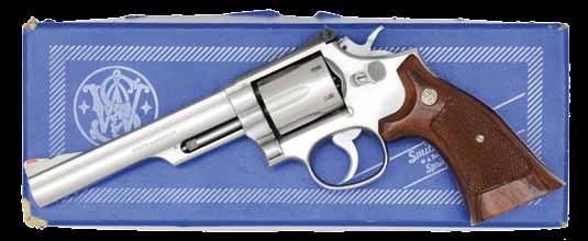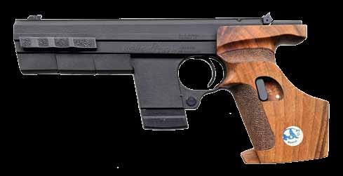 2761. WALTHER MODEL GSP32 EXPERT SEMIAUTOMATIC TRAGET PISTOL WITH MATCHING FACTORY CASE. Cal. 32 S&W Long. Bbl. 246556. Bbl. 4 1/2”. GSP32 Expert semi-automatic target pistol mfg. in Germany and Walther and imported by ERS, Inc. of Tewksbury, MA. Left side of the frame is marked with ERS’ importer information and the S#, with the right side exhibiting the S#, a German Eagle/N commercial nitro proof, as well as the Walther banner logo. Left side of the upper assembly is marked with Walther’s mfg. information above an Eagle/N nitro proof, “AI” (80) date code, and an Ulm Proof House antler stamp. Frame exhibits a faux damascus finish, with the upper assembly exhibiting a matte blue finish. Bbl. weight exhibits a blue finish. Frame is mounted with 2-piece Walther laminated wood thumbrest grips. Upper assembly is mounted with an Ultradot Matchdot II red dot sight. MAGS: 4 6-rd. UNATTACHED ACCESSORIES: matching factory hard case containing factory paperwork, and 3 spare mags. CONDITION: excellent, with metal components retaining bountiful amounts of their original factory finishes, exhibiting a few small scattered handling marks, and a couple small spots of flaking on the frame. Brilliant mirror bore, exhibiting sharp and welldefined rifling throughout. Grips are excellent overall. Red dot sight retains a clear optic. PROVENANCE: the collection of Gun Sport Ltd., owned by Jon R. Thomas. (23-4127/MLW). MODERN. $1,200-1,800.