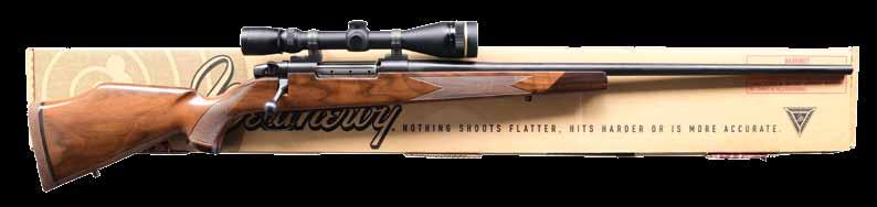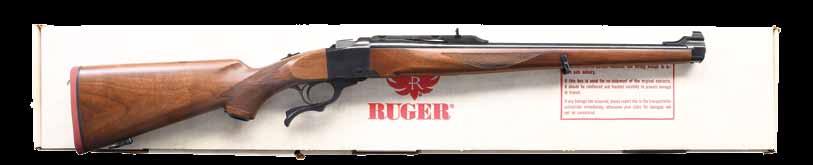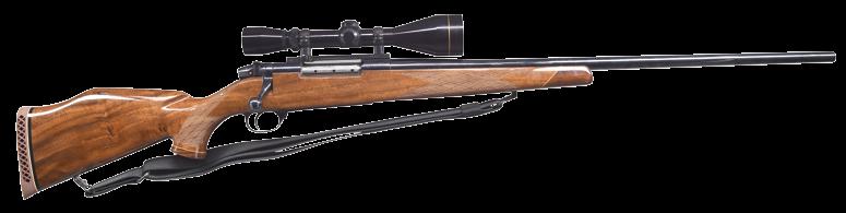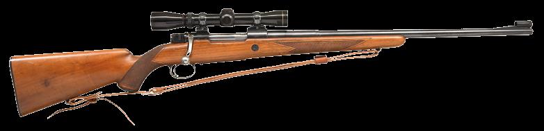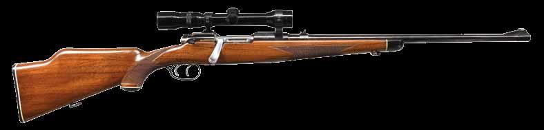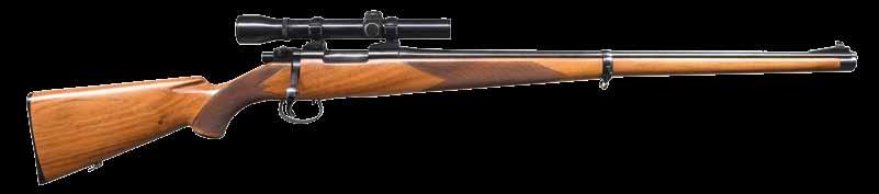 marked “MADE IN CZECHOSLOVAKIA”. Caliber is stamped on top rear, S# and 1949 proofs are on left. Small ring 98 Mauser type action with solid sidewall is of later style with top grooved and reshaped for scope rings. G&H side mount has been fitted. Bolt with engine turned body is sourced from a military rifle; handle has been lowered. Late type BRNO shroud with side safety is installed. Bottom metal is fitted with double set triggers; floorplate is removed with push button. Trigger guard is separate in late style. Full length stock of relatively plain European walnut measures 14-1/2” over checkered plastic buttplate and features right hand cheekpiece, plastic grip cap, steel nose cap and sling loops. Checkering is of point pattern. Rifle is fitted with Leupold VX-III 1.5-5 scope with duplex reticle in G&H mount. CONDITION: good as refinished. Metal parts retaining nearly all of a reblack. Stock with thick oil refinish; checkering lightly worn. Bolt a replacement; with stock grooved for low handle. Bore is bright and shiny. Scope is very fine, optically clear. (23-4646/MGM). CURIO. $2,000-2,750. is absent. Receiver is mounted with a Leupold VARI-X III 1.75x6 scope. CONDITION: metal components retain the majority of their original factory finishes, blued components with some light wear, handling marks, and surface oxidation, with black enamel trigger guard and floorplate showing some flaking at edges and some light handling marks. Mirror bore, exhibiting well defined rifling throughout. Stock exhibits scattered marks and minor impressions from handling and storage, but otherwise remains sturdy and serviceable. Scope retains a clear optic. (24-926/MLW). MODERN. $1,000-1,500.