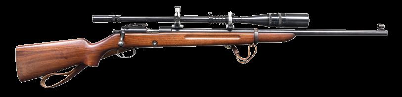 stock w/ right side cheekpiece, bottom mounted sling swivels & black factory buttplate. Buttplate is slightly proud of wood at heel & toe. LOP: 13 3/4”. CONDITION: stock retains much original varnish w/ a 1” crack on right side above trigger guard, scattered scratches & handling marks. Bolt body is mostly bright w/ some scattered oxidation. Balance of metal retains 85% original blue w/ light edge wear & a couple spots of light oxidation. Bright very good plus bore. PROVENANCE: from The Collection of Gun Sport Ltd owned by Jon R. Thomas. (23-3208/MJC). CURIO. $1,000-1,500.