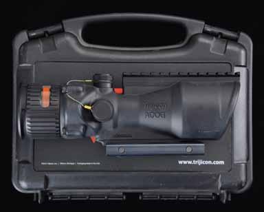 2764. TRIJICON MODEL 100005 ACOG 6x48 SCOPE. S# 025481. Matte-finished with an illuminated red horseshoe .308 ballistic reticle. It comes with a matching case and packaging. UPC: 719307303089. CONDITION: very good to near excellent finish with light handling marks; clear and serviceable optics. The case is very good, with retailer stickers. PROVENANCE: the Collection of Gun Sport Ltd owned by Jon R. Thomas. (02-20763/MD). $1,000-2,000.