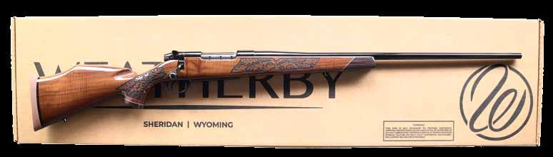 model designation on the receiver wall, with “Pat.angem.” above “MADE IN GERMANY” stamped on the right side of the chamber. Top of bolt shroud is marked with the Original Mauser logo. Floorplate features relief scroll engraving, with a small scene of a caribou in the center of the panel. Metal components exhibit a blue finish overall. Bolt body is jeweled. Wood pistol grip buttstock features finger grooves on the grip and is fitted with a Pachmayr White Line black rubber recoil pad. Receiver is mounted with a Weatherby Imperial 6x62 scope. UNATTACHED ACCESSORIES: 2 50-rd. blue plastic cases, 1 containing 50-rds. of assorted .375 H&H Magnum ammunition, with the other retaining 34-rds of assorted ammunition with 12 fired cartridge cases. CONDITION: excellent, with metal components retaining bountiful amounts of their original factory blue finish overall, exhibiting a few superficial marks from handling and storage on the aluminum trigger guard. Brilliant mirror bore, exhibiting well defined rifling throughout. Stock shows some