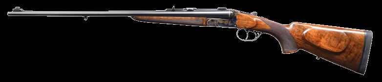 right rear has a thumb safety. Double-set triggers. Checkered pistol grip walnut stock w/ raised left side cheekpiece, ebony tip, bottom-mounted sling swivels, & grooved factory buttplate. LOP: 14”. CONDITION: stock shows scattered light dings & handling wear. Metal retains 95% of its original blue. Very good, bright bore. PROVENANCE: the collection of Gun Sport Ltd., owned by Jon R. Thomas. (23-3411/MJC). CURIO. $1,500-2,000.