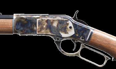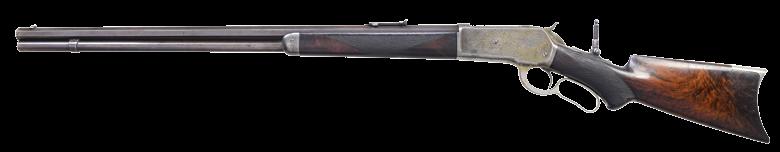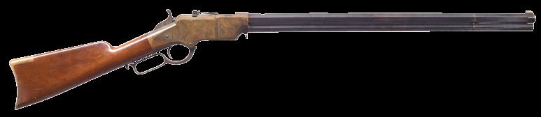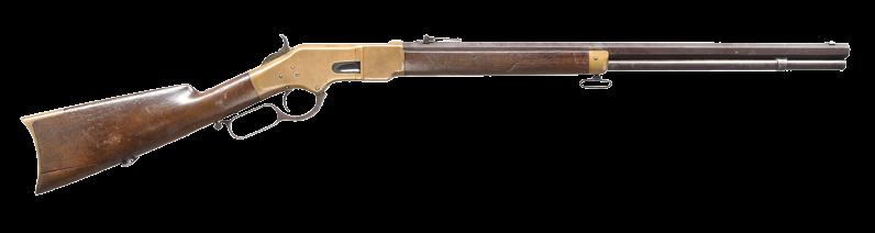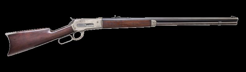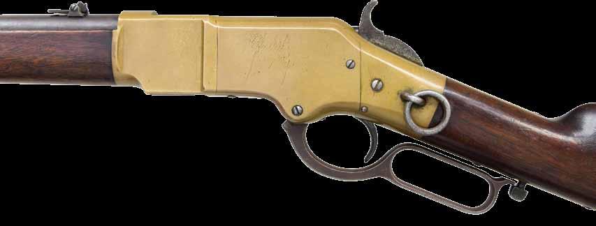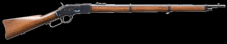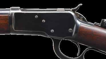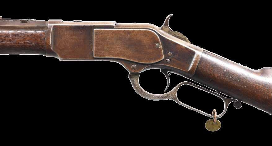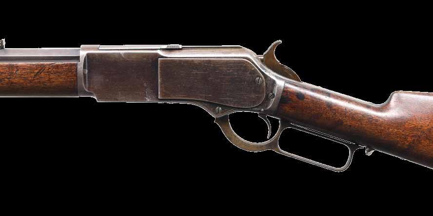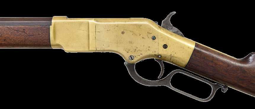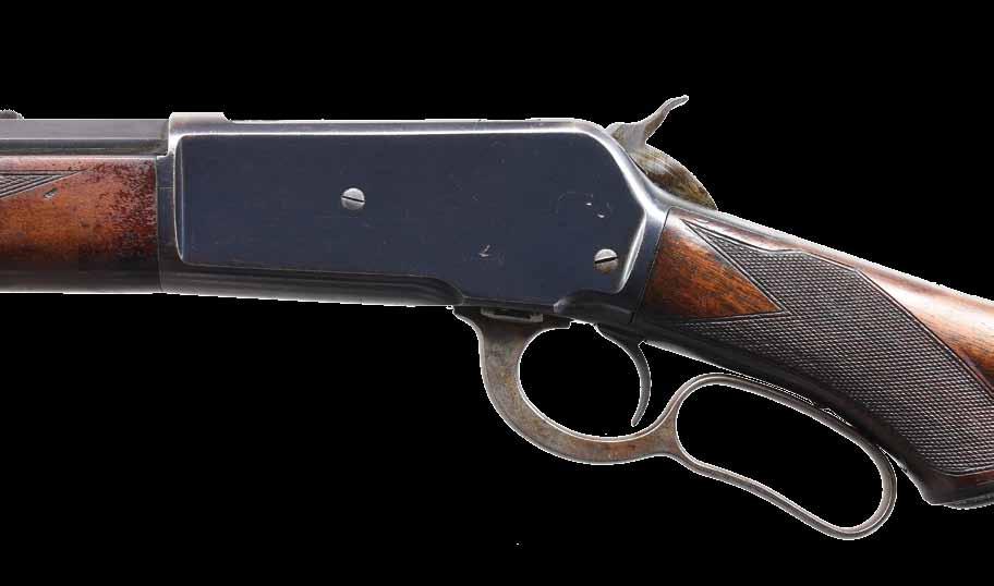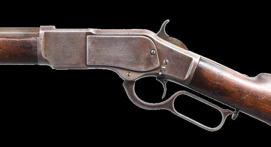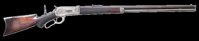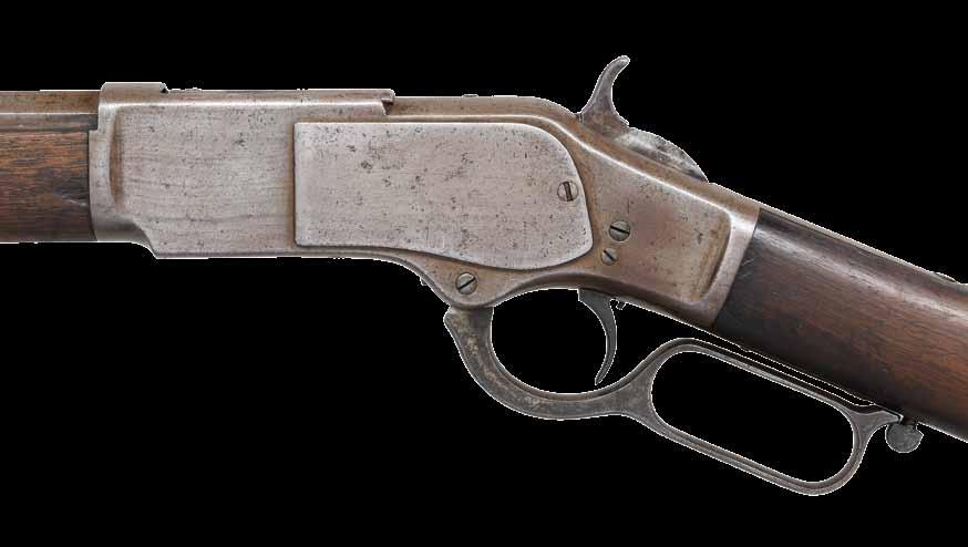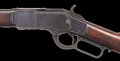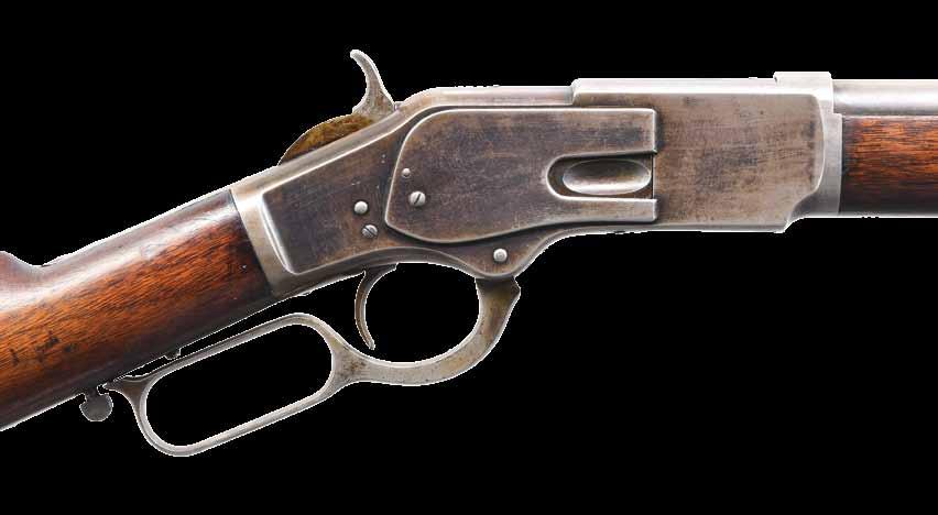 action. Walnut forearm and straight grip stock with crescent steel buttplate. Period aftermarket swivels. CONDITION: bbl. and mag. tube retain 80% lightly worn blue, showing spotted, light corrosion. case colored action is fading to gray/brown with spots of corrosion and light pitting. Wood shows wear with numerous scratches and marks. Stock is chipped at toe. Bore is dark with worn rifling. (24-4752/DS). CURIO. $1,000-1,500.