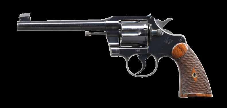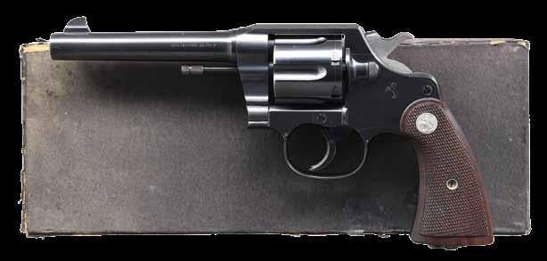 Mfg. Company / Address: St. Joseph, Missouri / Date of Shipment: September 23, 1913 / Number of Same Type Guns in Shipment: 38”. CONDITION: fine. Bbl., cyl. & grip straps retain 90% blue showing light carry wear w/ scattered small spots of finish loss. Frame has 80% nicely visible case colors. Grips show light wear. Sound action. Very good bore. (24-4734/DS). CURIO. $6,000-9,000.