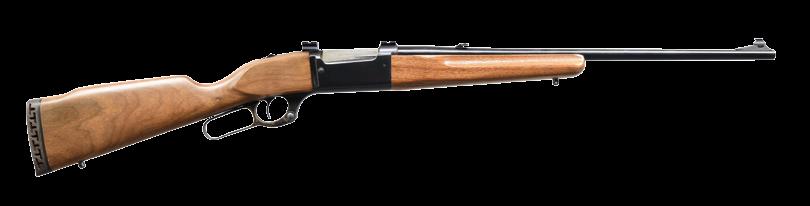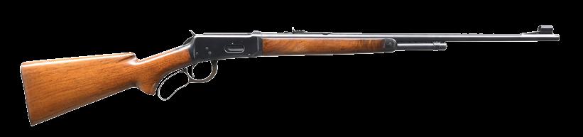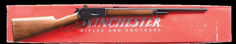 sight. Action features brass rotary magazine w/ left side shell counter, cocking indicator, bent tab safety & case colored lever. Forend & hard rubber capped pistol grip stock of checkered walnut have sling eyes & grooved steel buttplate. Mfg. 1939. CONDITION:60% fading blue showing carry wear. Wood finish shows wear & handling marks. Very good bright bore. (24-5783/DS). CURIO. $600-900.