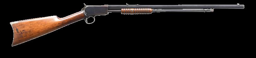 3152. WINCHESTER 3RD MODEL 1890 PISTOL GRIP SEMI DELUXE PUMP RIFLE. Cal. 22 LR. S# 610380A. Bbl. 24” octagon w/ model 1890 sporting sights. Uncommon & desirable pistol grip walnut stock w/ small hard rubber grip cap & crescent steel buttplate. Mfg. 1918, the 22 LR chambering was added in 1918. CONDITION: 70% dull fading blue. Wood has heavily worn finish w/ dark spots, scratches marks. Stock has a hairline crack at toe. Bore has worn rifling w/ light pitting. (24-1/DS). CURIO. $2,500-3,500.