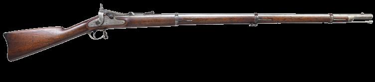 Blue & case-colored finish. Band-fastened walnut forearm and straight grip stock w/ steel carbine buttplate. Stock & forearm have added ornamentation consisting of 38 tacks w/ holes, indicating there were many more. CONDITION: metal finish is fading to mottled gray, showing spots of pitting w/ scratches & marks. Heavily sanded & refinished wood is undersized around metal. Bore has worn rifling. (24-1165/DS). CURIO. $500-800.