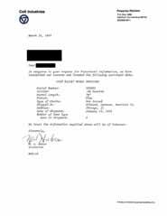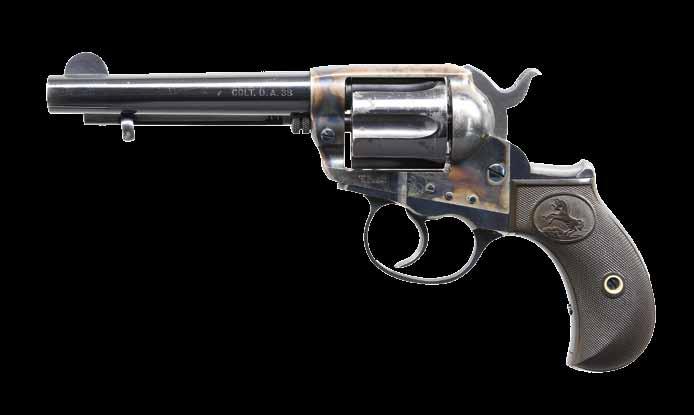 Not listed / Sold to: U.S. Government / Delivered to: U.S. Government Inspector at Colt Plant / Date of Shipment: August 3, 1884. / Number of Same Type Guns in Shipment: 150”. Also included is a letter of authentication from John A. Kopec. CONDITION: cleaned metal has a gray-brown coloration from the finish, showing scattered spots of light pitting. Refinished grips show heavy wear with dents and rounding at the butt. Action shows wear; missing its safety notch. Cyl. shows some side play. Bore has worn rifling with light pitting. (01-25616/DS). ANTIQUE. $3,000-5,000.