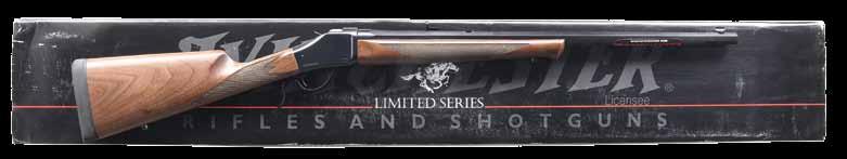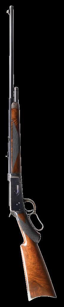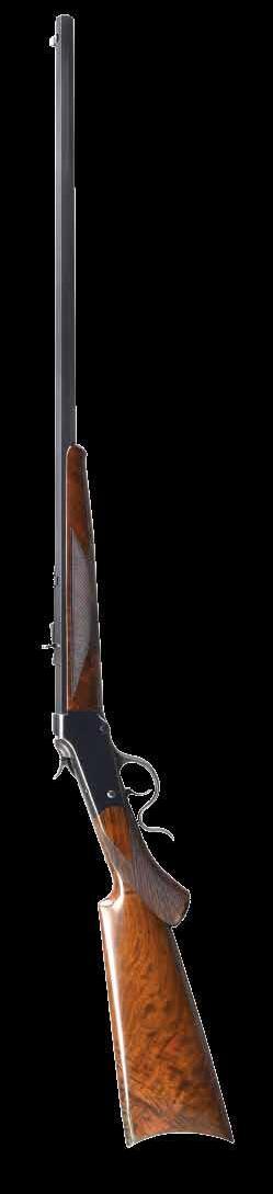 pattern hand checkering. WEIGHT: 10 lbs, 1.2 oz. CONDITION: action finish has faded to a mild even gray retaining faint traces of case colors in protected areas. Bbl. is professionally reblued. Relined bore retains strong rifling. Wood finish shows light wear & handling marks. (01-25730/DS). ANTIQUE. $5,000-8,000.