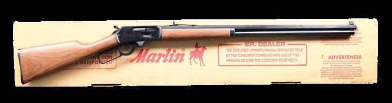 rifling. Bead front w/ sporting rear sight. Action is fitted w/ tip-off scope base. Full length tubular mag. Blue finish w/ case colored action. Beavertail forend & flat knob pistol grip walnut stock w/ plastic buttplate having Marlin trademark in toeline. Added swivel bases. Mfg. 1941. CONDITION: Over 95% blue & 75% case colors showing some fading. Original wood finish shows scratches & marks. Very good bore. (24-5557/DS). CURIO. $1200-1700.