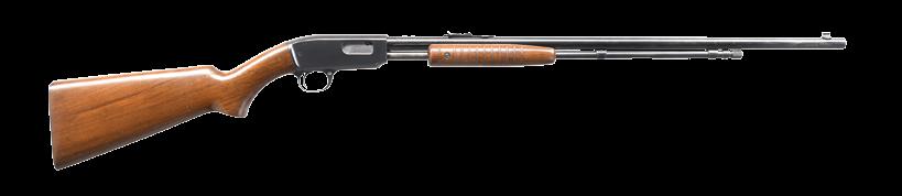 3151. WINCHESTER MODEL 90 STAINLESS STEEL BARREL PUMP RIFLE. CAL. 22 Long. S#. 819721. Bbl. 24” octagon of Stainless Steel. Stainless Steel bbls were offered for all for $9.00 extra for a short time in the 1920’s. They had a Japan black finish (black lacquer) that did not hold up well. On the M90 they are found above S# 712,000. CONDITION: Action & mag. tube have 70% blue showing fading. Bbl has 70% restored black lacquer finish. Wood shows wear & handling marks. Bore retains strong rifling. (24-5555/DS). CURIO. $2000-3000.