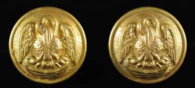 4032. 69 COAT SIZE BUTTONS & 75 CUFF SIZE BUTTONS OF THE CIVIL WAR ERA & BEFORE. A large assortment of military and uniform buttons from the Civil War era. Coat buttons include, but are not limited to, Eagle I, Vermont, Connecticut, New Hampshire, New York, Eagle C, Ulster Guards, 12th New York, 13th New York, Political, Michigan, Navy, and more. Cuff buttons include, but are not limited to, General Service, Eagle A, Engineer, Vermont, Connecticut, Patriotic, Eagle I, Navy, 7 Regt NY National Guard, and more. Please see photographs for other buttons included in this large lot. Nine of the coat buttons are on original Emilio collection cards, and eight of the cuff buttons are on original Emilio collection cards. CONDITION: condition varies greatly, but most buttons are not excavated, with a vast majority of their gold finish remaining. PROVENANCE: Luis F. Emilio estate collection. (02-23227-12/BF). $1,500-2,000.
