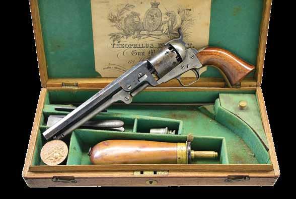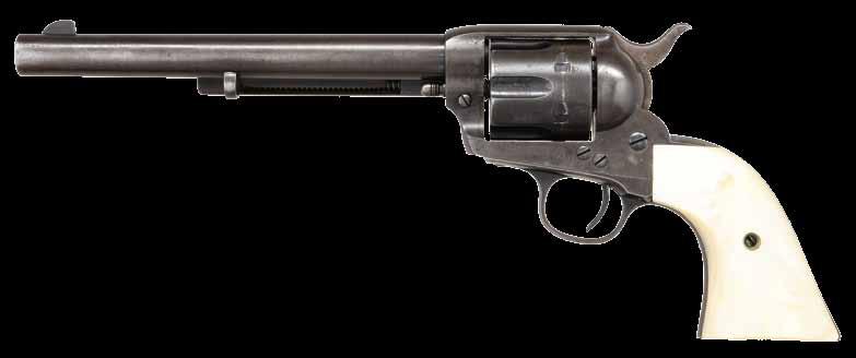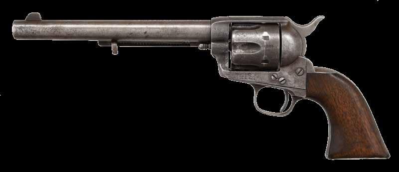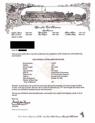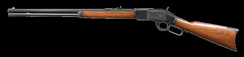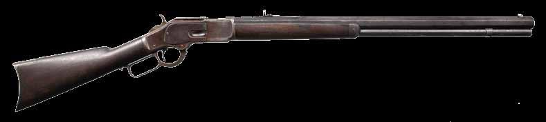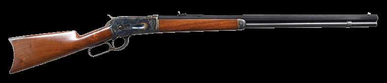 from the Cody Firearms Records Office detailing the following information, “Type: Rifle. Barrel Type: Octagon. Trigger: Plain. Received in warehouse on July 25, 1878. Shipped from warehouse on August 03, 1878, Order number 12592”. CONDITION: this fine rifle has strikingly beautiful finish that may be an old factory quality refinish. The appearance of this rifle is so good that it has sold in the past as totally original. The receiver even shows a light grain streaking in the metal as expected on older original rifles. Bbl. & action have 97% lightly faded blue showing faint edge wear & light handling marks. Hammer & lever retain over 90% case colors. Wood has a very good apparent older refinish showing scratches & marks. Crisp mechanics. Bore is generally bright w/ strong rifling. (01-24194/DS). ANTIQUE. $15000-20000.