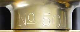 4608. VINTAGE S. & E. B. CO. DECK MOUNTED SIGNAL CANNON. Breech loading deck cannon appearing cast bronze (or brass) & nonmagnetic stainless. Pin latched breech block. Rear of chamber & breech block marked “N209” plus crown proofs w/ 3 points at top of crown. Distinct anchor on rear of barrel. Marks not visible w/ action closed. Fired by hand cocking striker & releasing spring loaded sear pin. Type of signaling device used on submarines, etc. Marked “CRAMP. S. & E. B. CO. / 25MM / PHILA. PA. U.S.A.” Cramp was shipbuilding company in Philadelphia started in 1830 & very active during WW I. It became idle in late 1920’s; reactivated for WW II to make submarines & cruisers. Copper lever (#348) to lock swivel. Decorative copper chain added where lanyard to fire would be routed. Attractive walnut base from table lamp. CONDITION: very good appearance; normal casting flaws visible in base & pintle. Fully functional w/ good bore. Replacement of springs throughout would be beneficial. (02-20987/NW). NON-GUN. $8001,200.