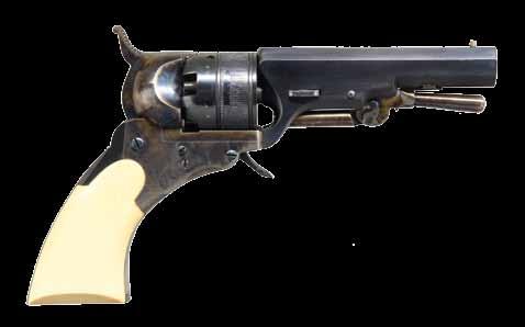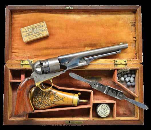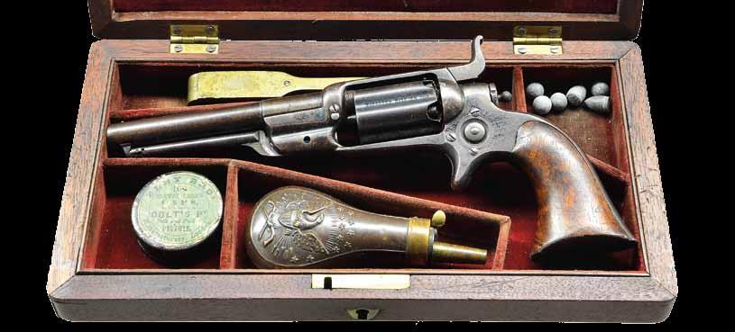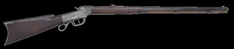 CONDITION: metal has gray coloration indicating touch up finish. Brass lifter is polished bright. Refinished forearm shows scattered small marks. Stock has good finish showing scattered marks. Sound action. Pitted bore retains largely intact rifling. (01-23893/DS). ANTIQUE. $3,000-4,000.