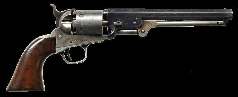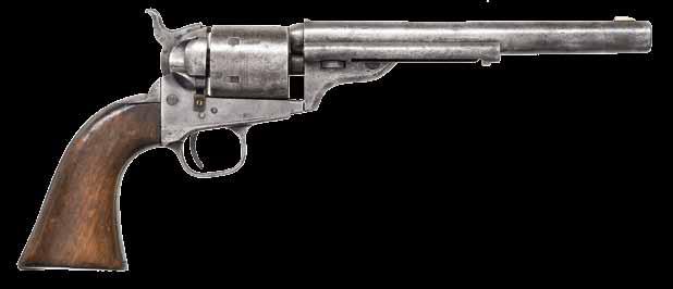 from the saddle ring. Barrel, lever, and buttplate exhibit areas of wear and thinning that show through to patina, with scattered areas of dark oxidation overall. Very bright bore, exhibiting a few scattered spots of pitting and strong rifling throughout. Wood furniture exhibits some scattered marks and minor impressions from storage and handling, but otherwise is very good overall. (23-2294/MLW). CURIO. $800-1,200.