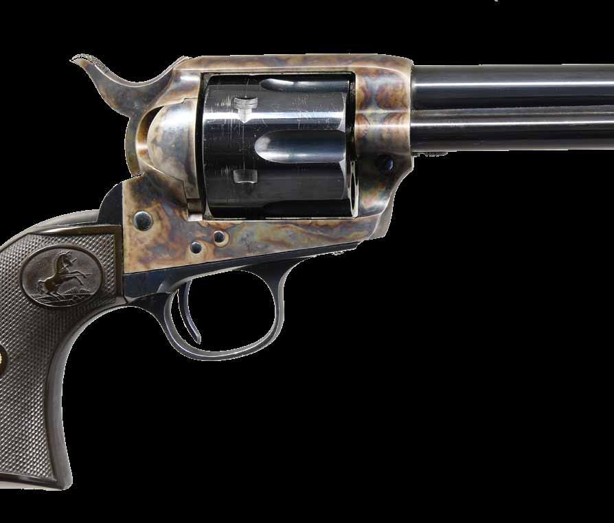 90% blue showing light carry & edge wear. Hammer & lever retain 50% case colors. Wood shows light wear w/ scattered