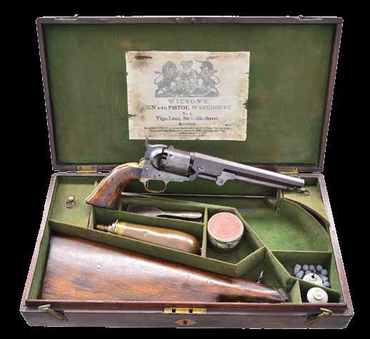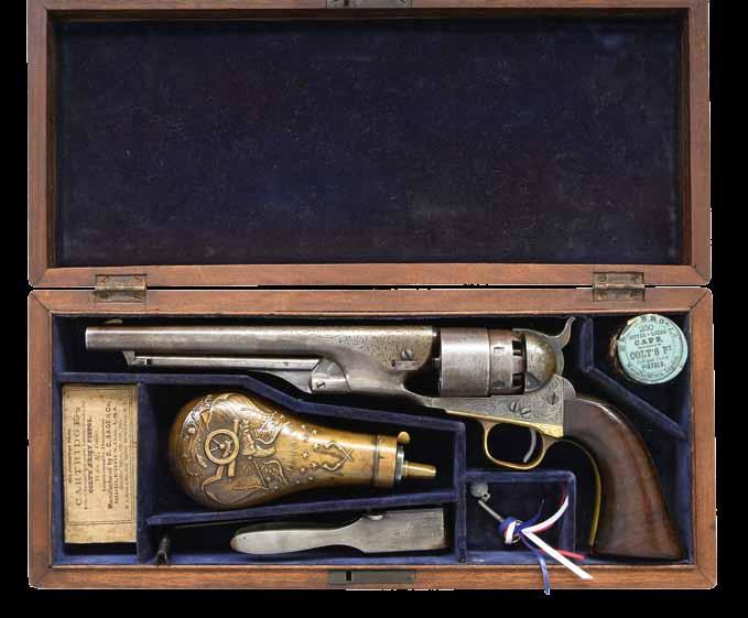 Action retains over 70% case colored finish showing spots of freckling. Wood has worn original finish showing numerous scratches & light marks. Bore is generally bright retaining strong rifling. (01-23966/DS). ANTIQUE. $4,000-6,000.
