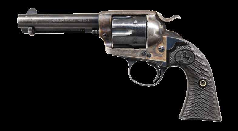 4095. WINCHESTER MODEL 1895 LEVER ACTION RIFLE. Cal. 30 US. S# 62170. Bbl. 28”. Model 1895 lever action rifle manufactured by Winchester in 1910. The barrel is stamped with the caliber designation over the breech, with Winchester’s 2 line address stamped across the left side of the receiver. Metal components exhibit a blued finish. Plain straight grip wood buttstock with a crescent buttplate, and a smooth wood schnabel tip forend featuring an ebony inlay. Brass blade front sight, with V-notch rear sight. CONDITION: metal components retain good amounts of their original factory blue finish, exhibiting wear and thinning overall that shows through to pleasant gray and brown patinas. Dark bore, exhibiting pitting and good rifling throughout. Wood furniture shows scattered marks and impressions from storage and handling, with the buttstock exhibiting a loss at the buttplate tang and toe, and with the forend exhibiting some minor losses along the barrel channel. (23-2043/MLW). CURIO. $1,200-1,800.
