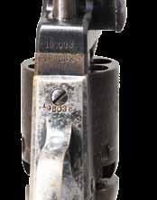 near heel has an added compass. Mfg. 1926. CONDITION: 70% bbl. blue showing muzzle wear & scattered marks. Action finish is fading to brown on sides & gray in carry areas. Wood has worn finish showing scratches & marks. Stock has a repaired chip left of top tang. Bore retains strong rifling showing small spots. (23-4821/DS). CURIO. $1,750-2,500.