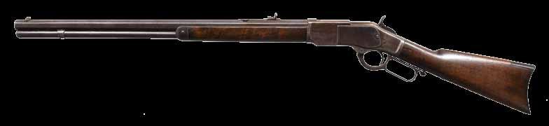 4040. WINCHESTER 1876 LEVER ACTION SRC. Cal. 45-75. S# 23279, appears to be over stamped from 23479. Bbl. 22” round of carbine style. Reverse mounted sporting leaf rear sight. Left side of action has saddle ring. Band fastened full length original forearm. Straight grip walnut replacement stock using original steel trapdoor carbine buttplate. Toeline of stock behind lower tang has a small stamping that may be a letter “W”. Mfg. 1882. UNATTACHED ACCESSORIES: Cody Firearms Museum records check detailing the following information, “Type: Rifle. Barrel Type: Round. Trigger: Plain. Received in warehouse on October 25, 1876. Shipped from warehouse on May 8, 1878, Order number 11778”.