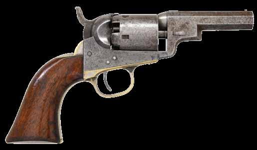 spots of pitting. Action retains 50% dull flaking blue fading to brown. Lever & buttplate are gray showing light corrosion. Original wood finish shows wear w/ numerous scratches, marks & small dents. Bore is generally bright w/ sound rifling having pitting near the muzzle. (23-2537/DS). CURIO. $1750-2500.