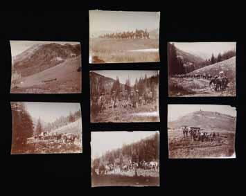 4675. 7 WESTERN PHOTOS. 4.5” x 3.75” images; one with white ink “NEW MEXICO / INDIAN VIEWS”. Interesting group of images which appear to have African American Buffalo soldiers, reservation Indian police, and other cavalry views. CONDITION: good-very good, versos have glued remnants of paper where taken from album. PROVENANCE: Martin Lane Historic & Western Americana Lifetime Collection. (02-21928/JS). $300-400.