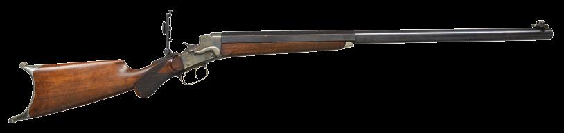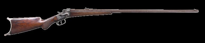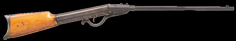 4684. UNMARKED ANTIQUE QUAKENBUSH STYLE AIR GUN. Cal. 25. S# 13775. Half octagon & round 21 3/4” barrel with blade front sight & notch rear sight. Barrel break action with sliding trigger guard compacts spring. Walnut cheekpiece stock with Scheutzen style buttplate. CONDITION: metal has brown patina appearance with faint traces of blue & scattered peppery oxidation & handling marks. Buttplate shows oxidation & 1 missing stock screw. Fair stock shows wear & marks. Fair bore with pitting. (02-22358/MD). $600-900.