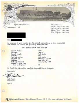 1. DESCRIPTIONS: We have attempted to make a consistent effort in cataloging and correctly describing the property to be sold. Should the need arise, we will make verbal corrections and provide additional information at the time of sale. A correction to the printed material announced by the auctioneer during the auction takes precedence over printed descriptions. The printed catalog descriptions carry a limited guarantee to protect you against major discrepancies that would have a major effect upon the value of the item. Under no circumstances do we guarantee against anything less than a major discrepancy that would have less than a major effect upon value. Several examples: If we call a Colt a Winchester. Or if we state the firearm is in original finish and it has been re-blued. Percent estimate of finish is an opinion and may vary from individual to individual, so this would not qualify. Not every item included in this auction has been completely disassembled to verify internal component’s origins. However, if we have made the statement that the item is “all matching” or “internal numbers match”, we guarantee that this information is accurate. If an item’s description does not list the status of the internal components, we do not guarantee that they are original, matching or that they are period. If you would like additional information concerning internal components of a firearm that does not mention the internal components in the description, please contact us at 207-453-2114 and our consultants will be happy to assist you at their earliest availability.