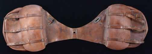 4681. FINE TOOLED COWBOY STYLE CHILD’S SADDLE, CIRCA 1900. This child-sized saddle measures approx. 17” long and 12” wide. Saddle is complete with matching tooled, shrouded wood stirrups. UNATTACHED ACCESSORIES: descriptive sheet. CONDITION: very good overall; the high edge of the back is scuffed; brown leather has most of its finish remaining. PROVENANCE: Martin Lane Historic & Western Americana Lifetime Collection. (02-21638/JS). $600800.