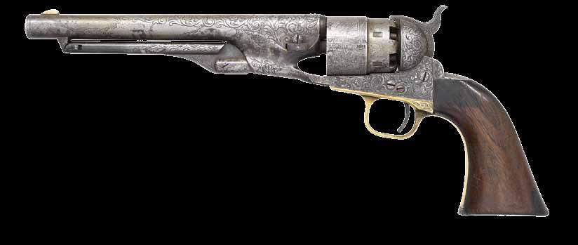 4630. RARE KPM LITHOPHANE OF SAMUEL COLT HOLDING COLT REVOLVER, CIRCA 1855. 7” x 5.75” oval lithophane portrait of Samuel Colt holding a revolver. KPM Royal Porcelain from Berlin was famous for lithophane plaques in mid 19th century. When backlit, vivid details of Colt appear. His eyes seem to move and follow you with intensity, KPM was famous for the realism of his plaque portraits. Verso has KPM trademark over “KPM/460/Z”. In 1855, Colt is known to have commissioned 111 examples of this lithophane bearing his portrait to be used in the windows of his mansion, Armsmear, and others for presentation as gifts. The image, the only known of Colt holding a revolver was made a from a photograph taken of Colt in Germany in 1855. CONDITION: fine. PROVENANCE: Martin Lane Historic & Western Americana Lifetime Collection. (02-21658/JS). $1,500-2,500.