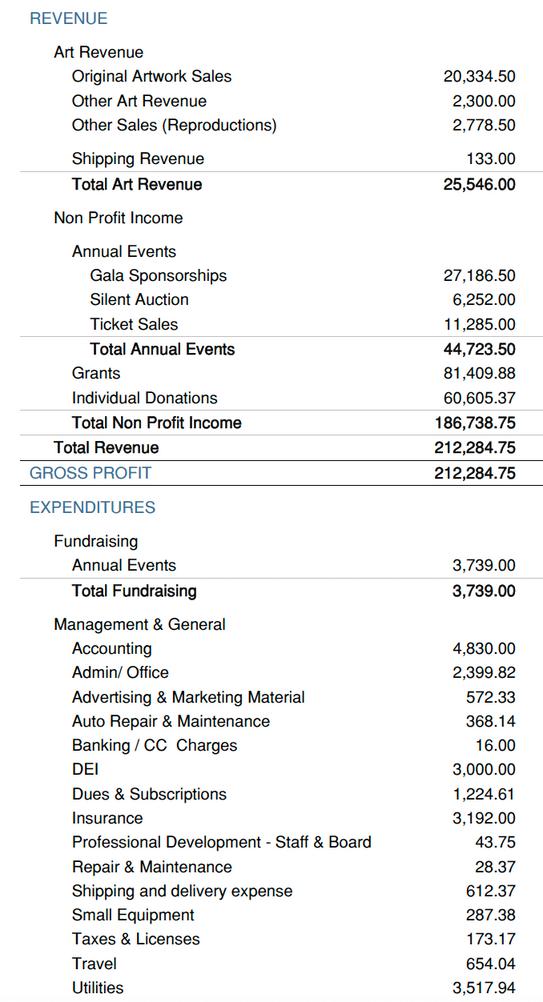In March 2023, we celebrated our most successful gala to-date at Riverside Revival surpassing all of our revenue goals including sponsorships, ticket sales, and silent auction. We also met our sales goal and sold over $13k of original artwork by our artists and paid out over $7,000 from one night!
